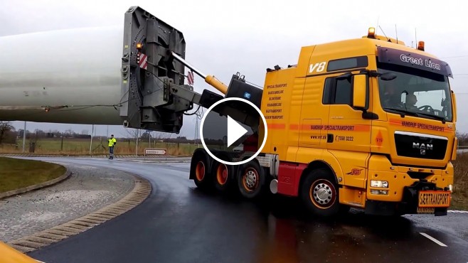 You MUST SEE this super cool video!!! This is how a skilful Danish driver from Vamdrup Specialtransport Company transports a giant 241 feet blade all through a roundabout way just like a real boss.