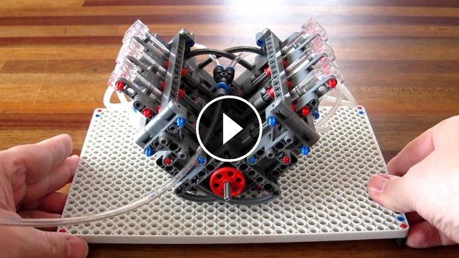 This amazingly enjoyable video we share with you here shows a real configuration of V6 engine made up of LEGO parts and pneumatic pistons. The engine is filmed while running at its maximum speed, which is approximately 800rpm@4 bar. I've never thought that LEGO parts could be used in that way.